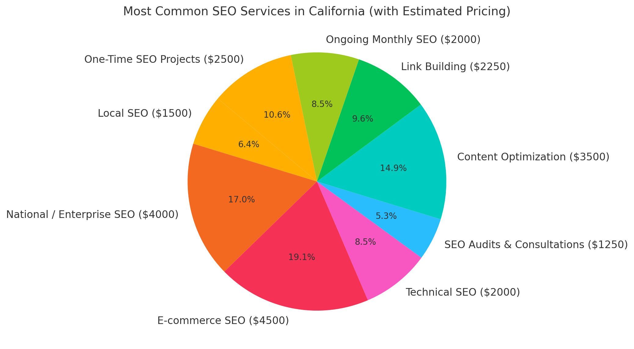 For businesses in California, there are a variety of SEO services to consider based on your location and business goals. If you’re looking for local SEO pricing near me, these services typically include Google Business Profile optimization, local citation management, and ranking improvements on local maps for $500 to $2,500/month.